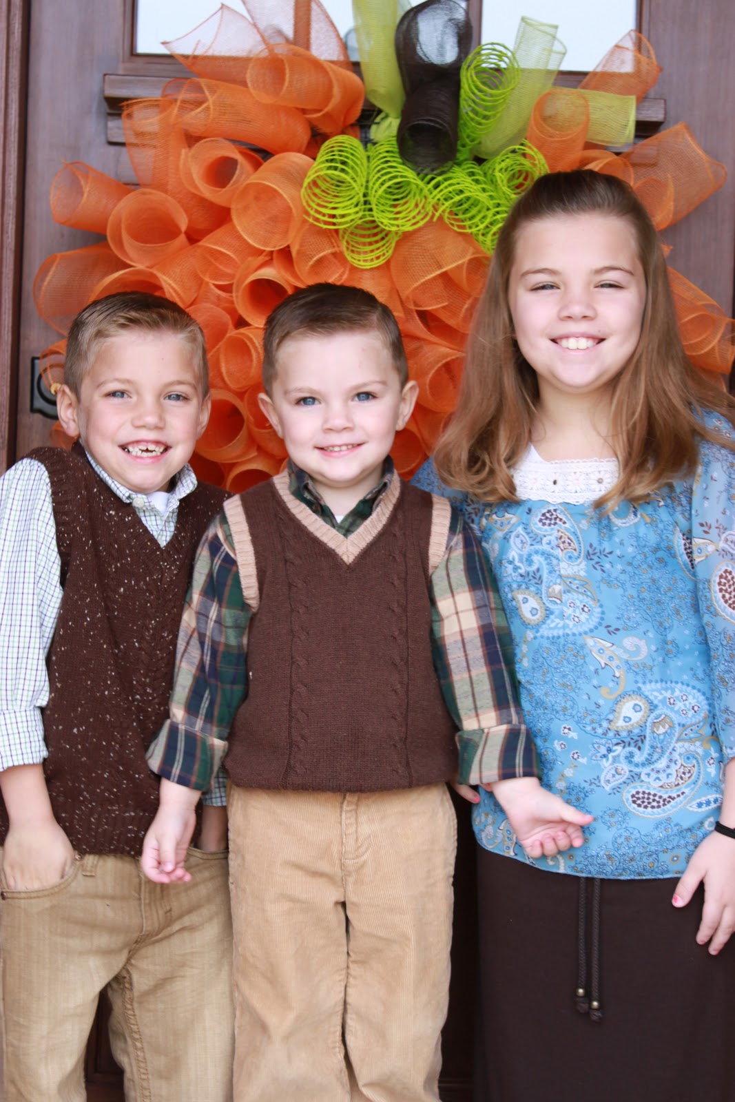 I have been slack on the picture taking these days. Instagram is to thank for that! (ok- slack with my camera- my phone however is on overload!) I will probably never admit this to my husband- but that big ol' camera isn't the most convenient thing to whip out of my bag for snapshots. I LOVE it for real- but I see why people opt for the smaller/more convenient sized cameras now. He shall never know I have any complaints about said camera though- because somebody had to have the big ol' camera (uh-hum no names called) so somebody will just have to deal with it FOR-EV-ER ! I did get some pics of my kids in their Bama attire for the first Bama game of the season.... and I got a few of them with my big pretty pumpkin wreath that is my FAVE fall decoration.... so I will share those for now...